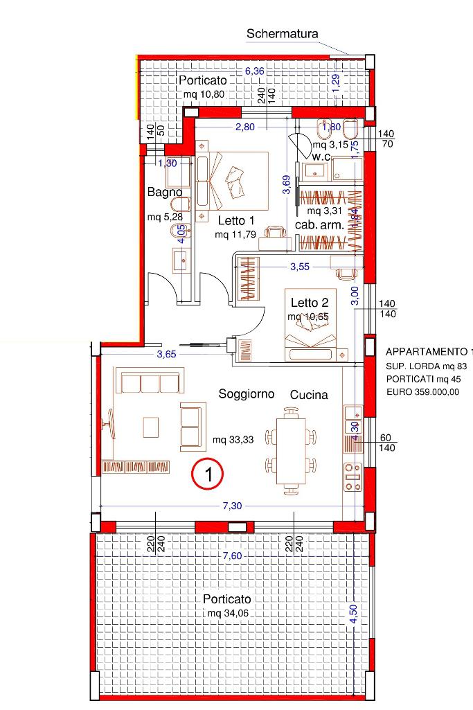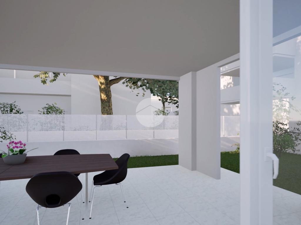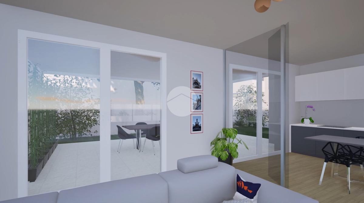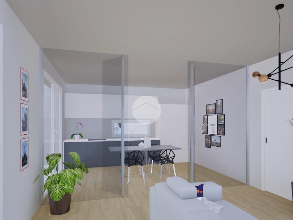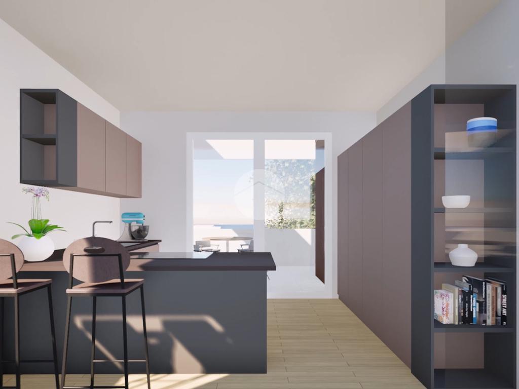 Al primo piano, elegante appartamento con tripla esposizione, si distingue per l'architettura moderna e i materiali di alta qualità. Si compone di un ampio soggiorno e cucina in open-space dal quale si accede ad un ampia terrazza abitabile di oltre 34 mq. Tramite disimpegno si accede alla zona notte, la quale comprende due camere da letto, una delle quali con bagno en-suite e cabina armadio; bagno principale ed una seconda terrazza di oltre 10 mq.