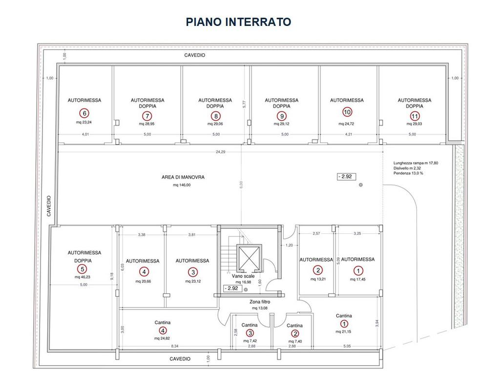Al piano interrato, autorimesse di varie dimensioni, dotate di serranda avvolgibile motorizzata e predisposizione per wallbox ricarica per auto elettriche. Il prezzo di listino delle autorimesse varia a seconda della metratura.