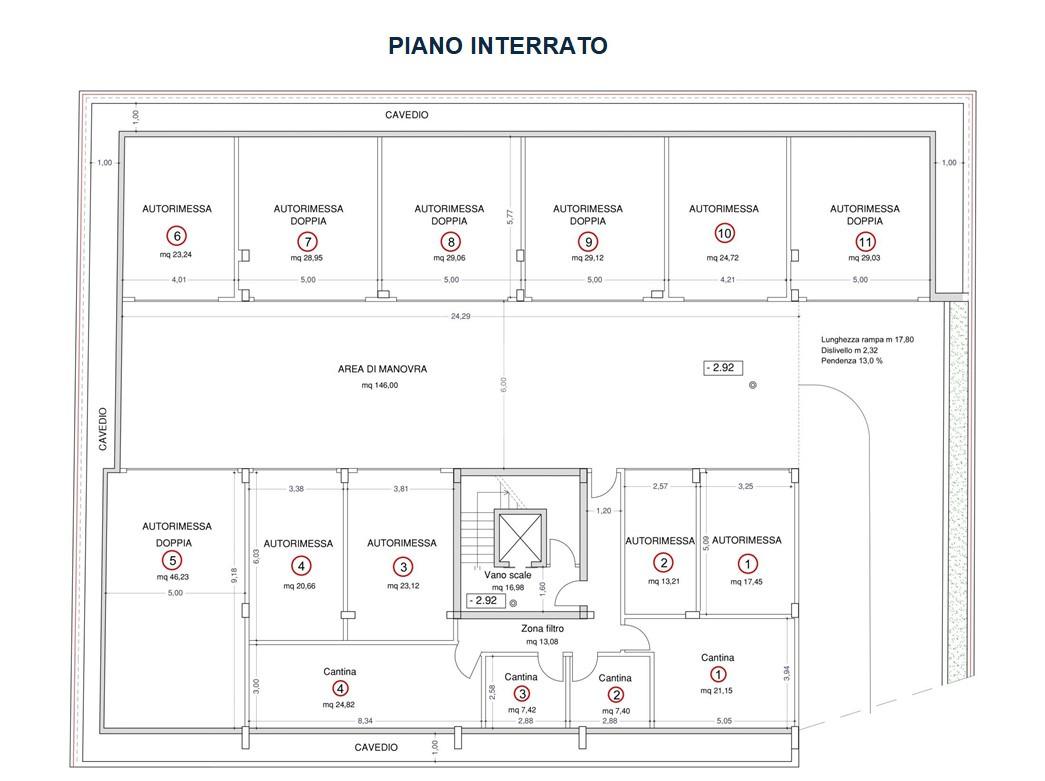 Al piano interrato, autorimesse di varie dimensioni, dotate di serranda avvolgibile motorizzata e predisposizione per wallbox ricarica per auto elettriche. Il prezzo di listino delle autorimesse varia a seconda della metratura.
