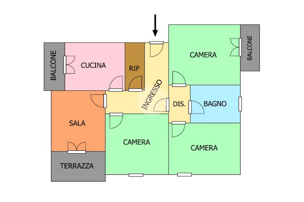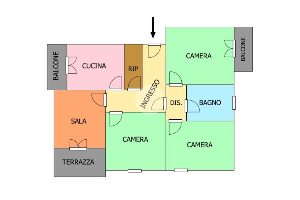 L’appartamento, sito al quarto piano di una palazzina dotata di ascensore, ci accoglie in un comodo ingresso dal quale si accede ai diversi ambienti.