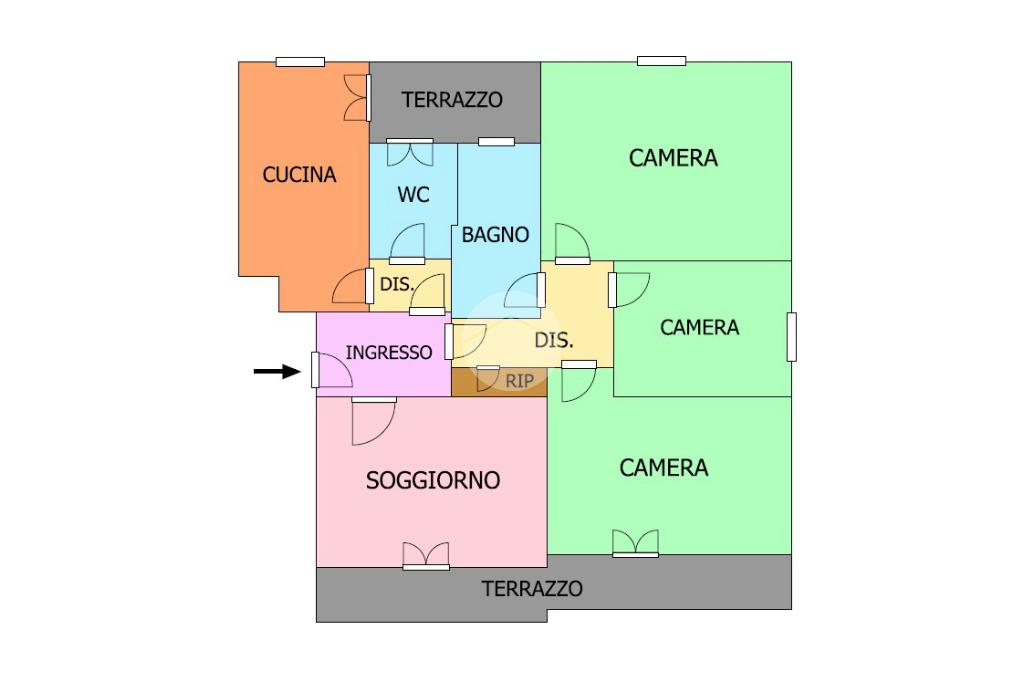 L’immobile ci accoglie in un comodo ingresso che permette l’accesso ai diversi ambienti.