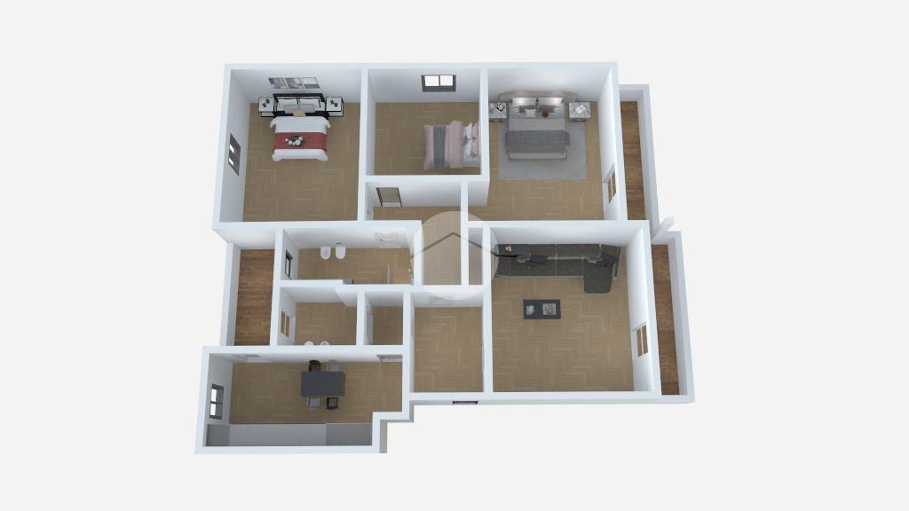 Tramite disimpegno si accede alla zona notte, composta da due camere da letto matrimoniali ed una camera singola.