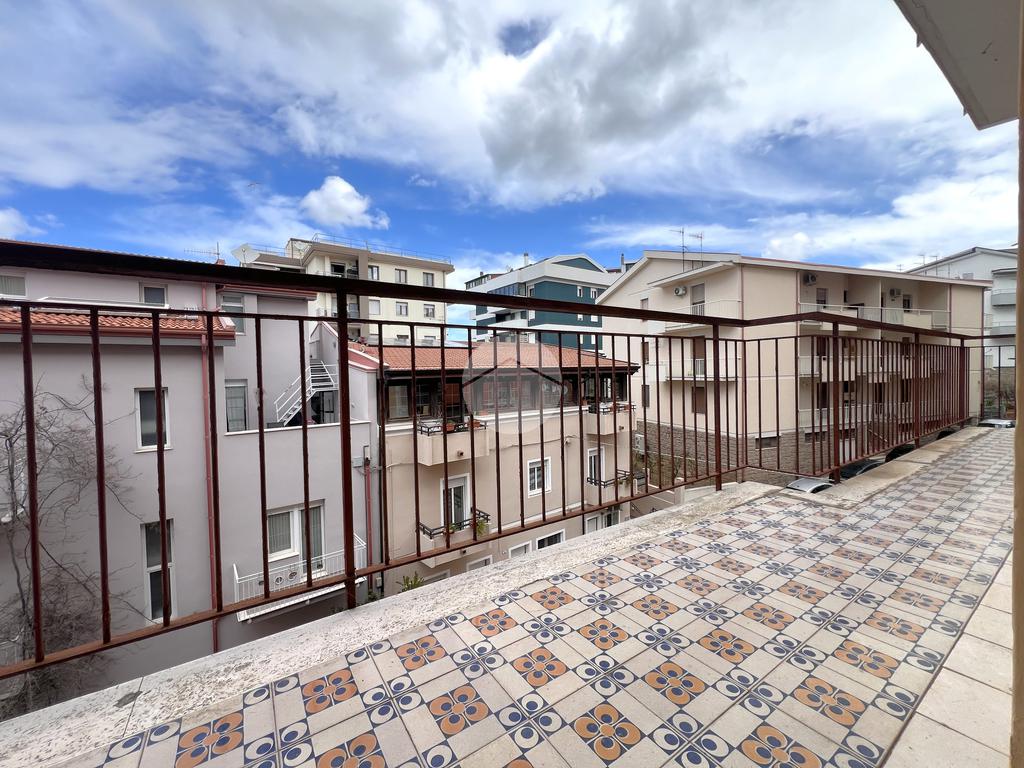 La zona giorno si compone di una spaziosa sala, dalla quale si accede ad un primo balcone con affaccio nella via principale e di una cucina abitabile e separata.